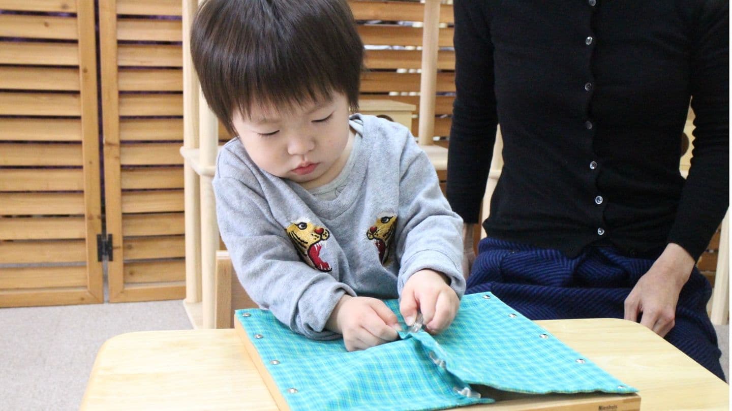 指先を使うおしごとや、片付けなどの日常動作を通して、自立の芽を育てます。大人は手を出しすぎず、見守ることに徹します。