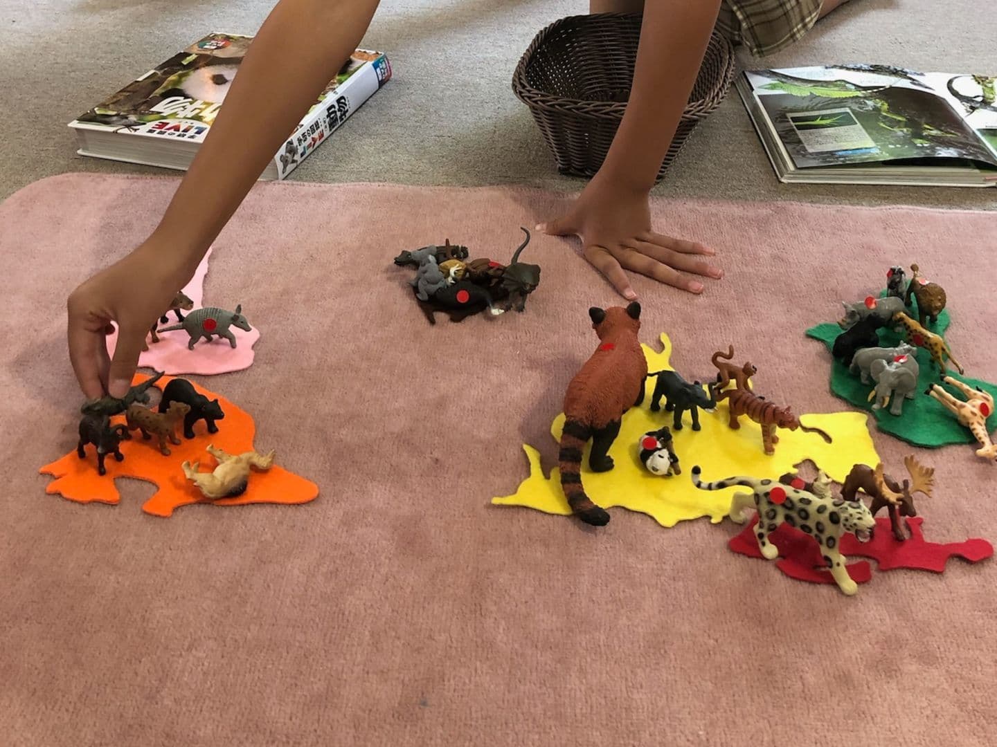 ・大陸地図パズルで世界に触れる ・動植物カードやフィギュアで分類する力や「違い」を受け入れる心を育む